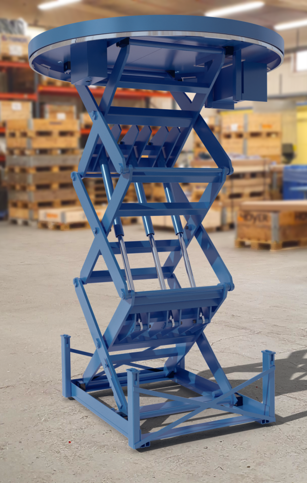 5 100 mm. Dubbel och trippelvertikalsaxbord har stor lyftrörelse i förhållande till bordsstorleken. Vi använder oss av cylindrar med lång slaglängd som är monterade mellan den nedersta och den översta saxen för att ge det stabilaste lyftet och den minsta nedfjädringen.